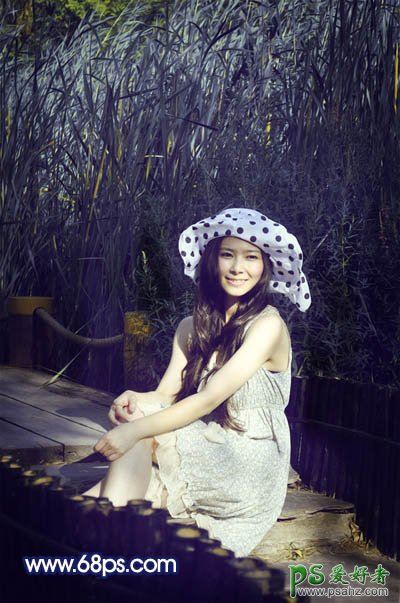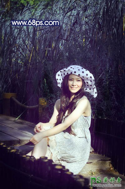 13、新建一个图层,盖印图层。选择加深工具,曝光度设置为5%左右,然后把人物周围杂乱的部分加深,效果如下图。