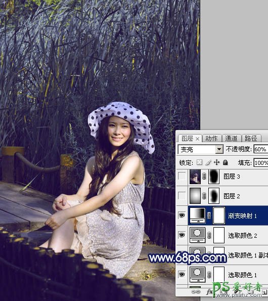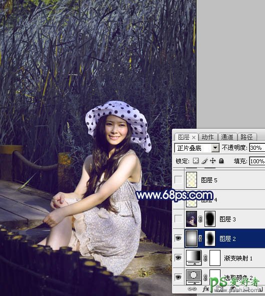 PS调色教程:给公园里的MM照片调出暗紫艺术效果