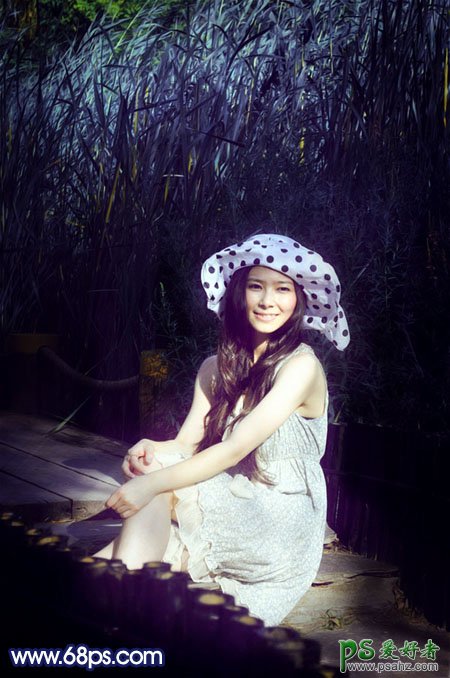 今天我们来学习一篇PS美女照片调色教程,PS调色教程:给公园里的MM照片调出暗紫艺术效果,原图素材背景部分稍微有点杂乱。调色以后需要对背景进行简单的处理,可以用加深工具把杂乱的部分涂暗一点,这样可以跟好的突出人物部分。