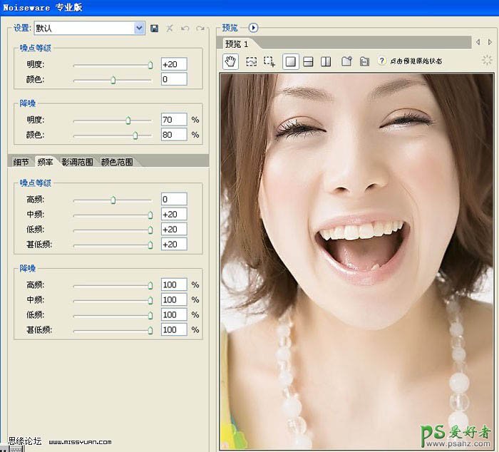 2、noisewarepro参数: 这个滤境用过,头发那里需要蒙板来擦出:
