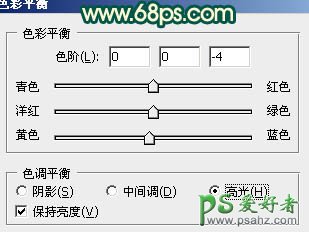 4、创建色彩平衡调整图层,对中间调及高光进行调整,参数设置如图6,7,效果如图8。