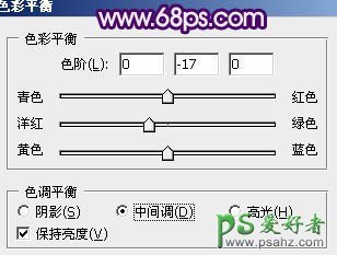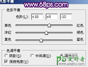 3、创建色彩平衡调整图层,对中间调及高光进行调整,参数设置如图4,5,效果如图6。