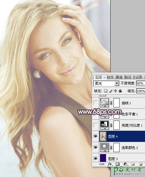 6、新建一个图层,按Ctrl + Alt + Shift + E 盖印图层。执行:滤镜 > 模糊 > 高斯模糊,数值为5,确定后把图层混合模式改为“柔光”,不透明度改为:30%,效果如下图。