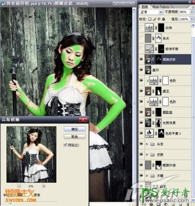 24、下面对图片中的一些细节进行修饰,CTRL+J复制一层,执行高斯模糊滤镜(设置半径2)并配合蒙板再次对皮肤的添加少量的柔和感,如图。