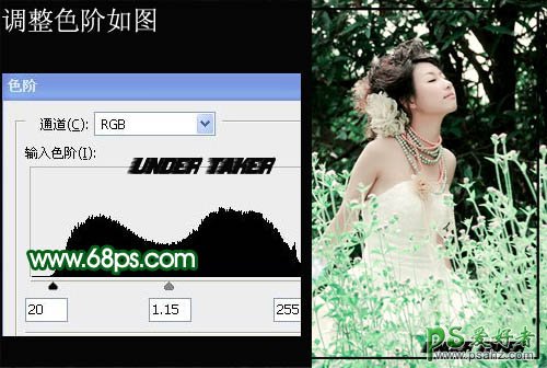 3、创建色阶调整图层,参数设置如下图。