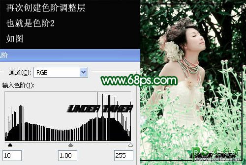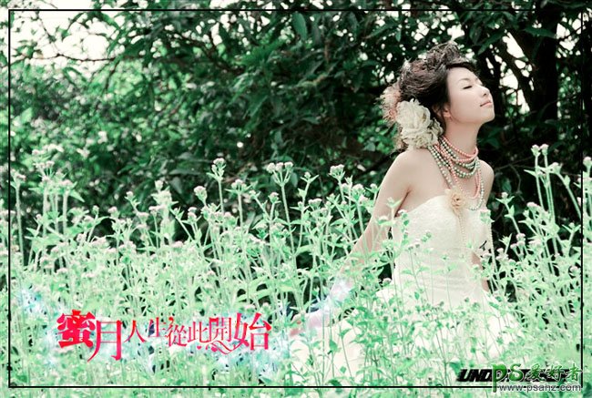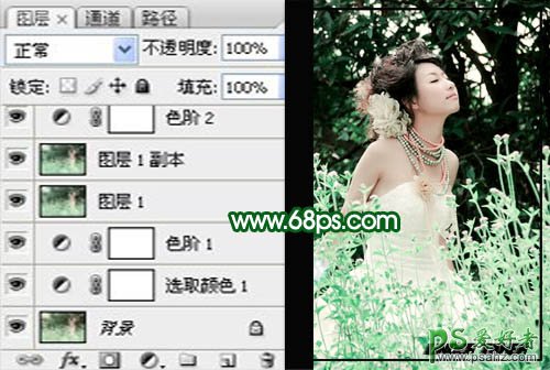 PS调色教程:给蜜月中的美女婚纱艺术照调出清爽绿色效果