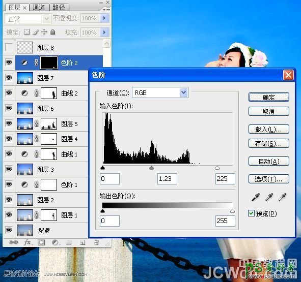 PS调色教程:给海边浪漫的美女婚片调出纯美的蓝色调