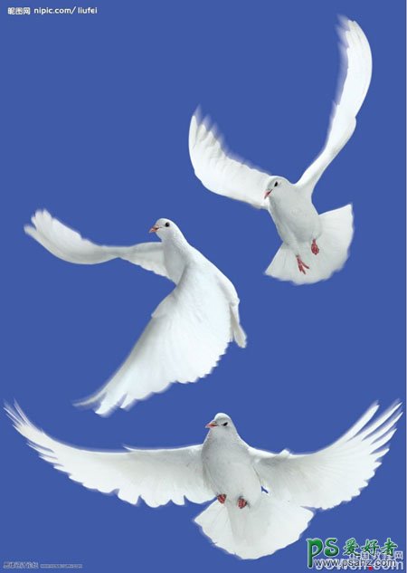 12、打开下图所示的素材。把白鸽抠出来,自由变换命令调整图像大小和方向。