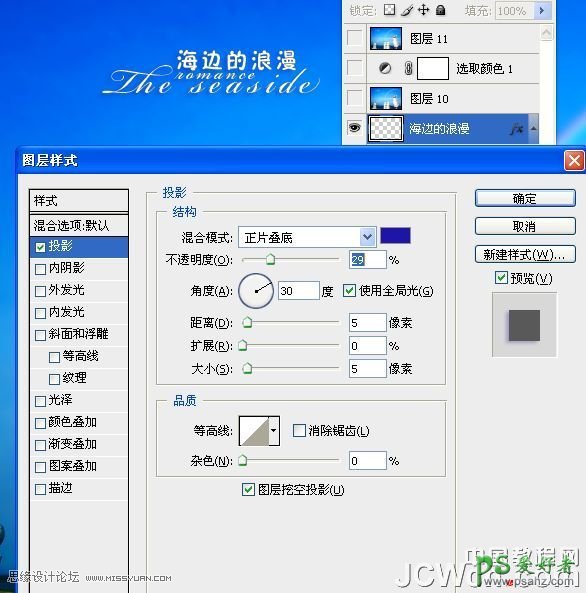 PS调色教程:给海边浪漫的美女婚片调出纯美的蓝色调