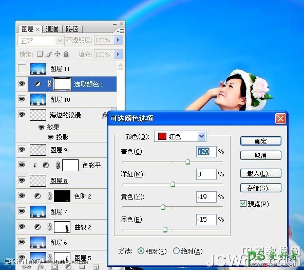 PS调色教程:给海边浪漫的美女婚片调出纯美的蓝色调