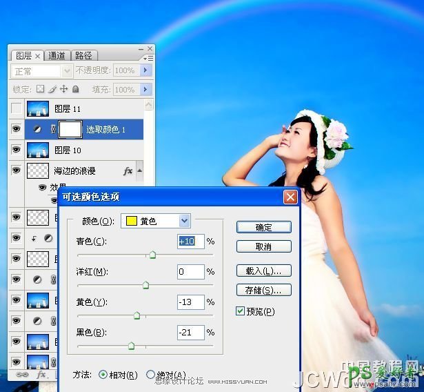 PS调色教程:给蜜月中的美女婚纱艺术照调出清爽绿色效果