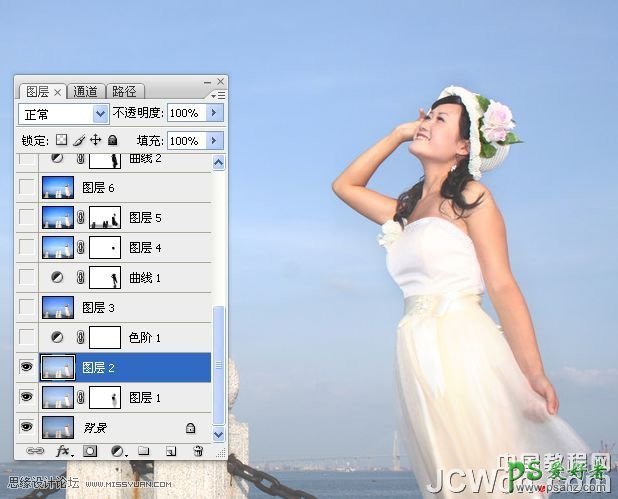 PS调色教程:给海边浪漫的美女婚片调出纯美的蓝色调