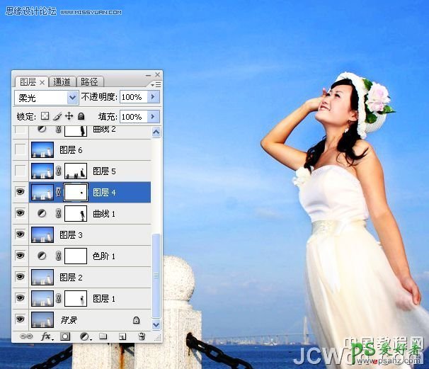 7、盖印图层,执行“应用图像”命令提亮图像(对话框中的混合模式为滤色,不透明度30%)。修改图层混合模式为柔光,添加图层蒙版,涂抹出过曝的人物区域。