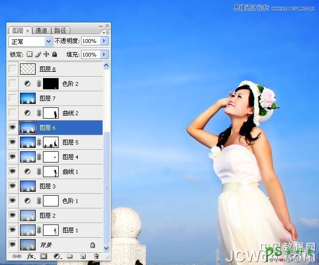 PS调色教程:给海边浪漫的美女婚片调出纯美的蓝色调