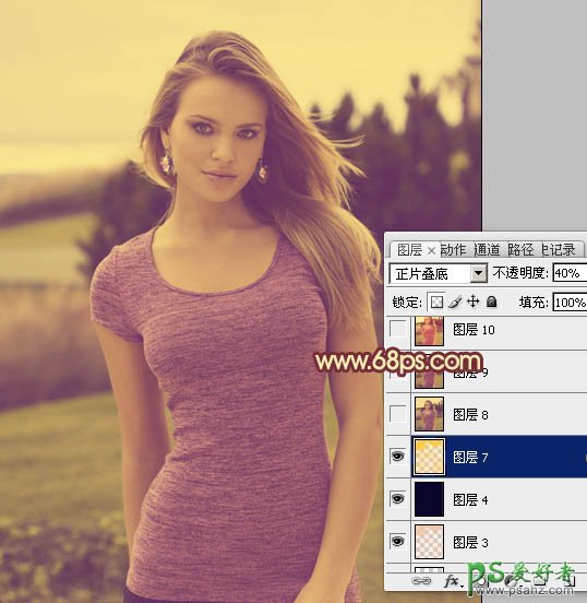 4、按Ctrl + Alt + ~ 调出高光选区,新建一个图层填充颜色:#FEC927,图层混合模式改为“正片叠底”,不透明度改为:40%,效果如下图。
