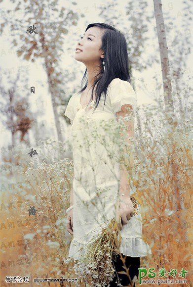 这里我们教大家学习一篇美女艺术照调色,PS美女照片后期调色教程,PS调色实例教程:给外景MM照片调出古典橙褐色,本教程介绍橙褐色外景图片的简单调色方法。大致过程:先用调色工具把原图中的主色绿色调成橙黄色,然后再用光照滤镜加上暗角及底色即可。