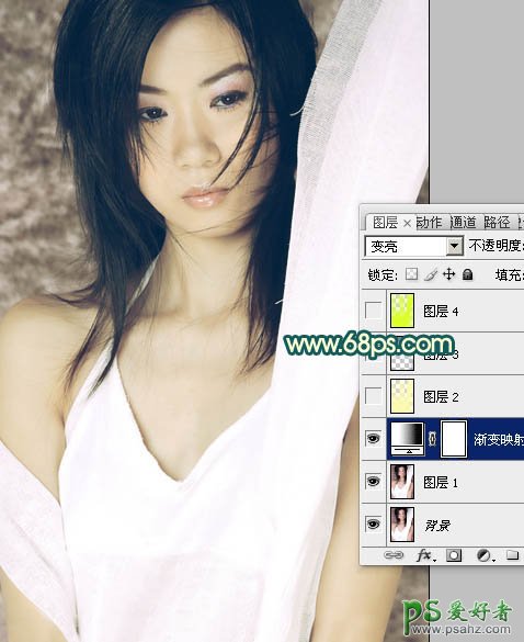 1、打开原图素材,创建渐变映射调整图层,颜色设置如图1,确定后把图层混合模式改为“变亮”,效果如图2。