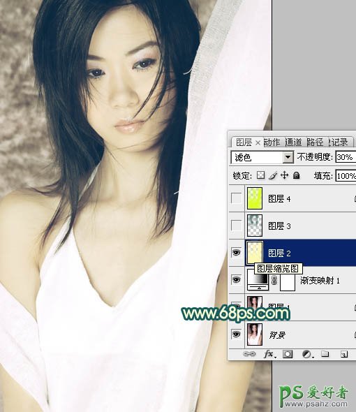 2、按Ctrl + Alt + ~ 调出高光选区,新建一个图层填充颜色:#FCF9B1,图层混合模式改为“滤色”,不透明度改为:30%,效果如下图。