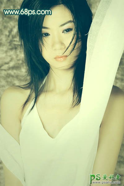 photoshop给湿身美女艺术写真照调出淡黄怀旧色彩