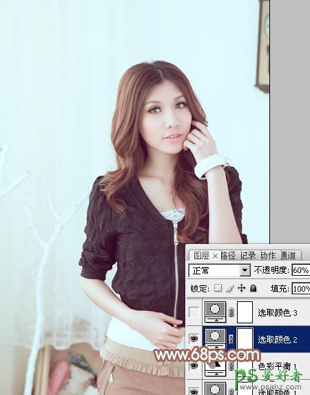 PS调色教程:给室内美女照片调出甜美的淡蓝色