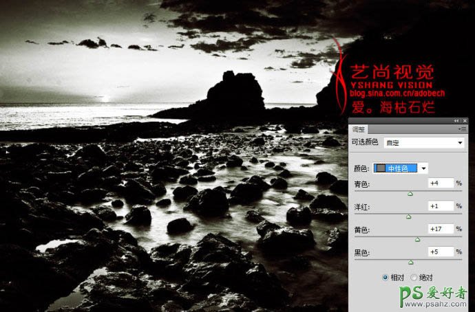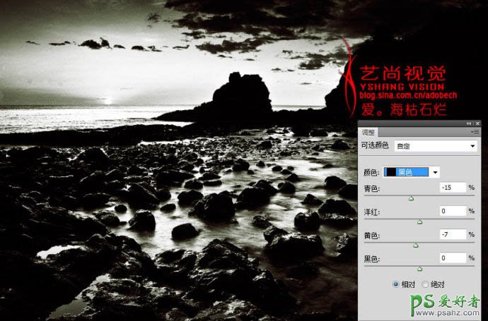 PS调色教程:给黑白海滩照片调出艺术色彩