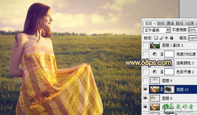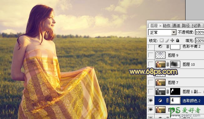 PS调色教程:给田野上的欧美少妇调出金色黄昏效果