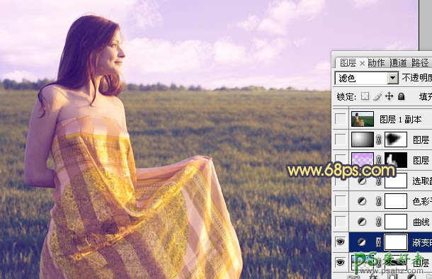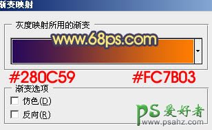 3、创建渐变映射调整图层,颜色设置如图4,确定后把图层混合模式改为“滤色”,效果如图5。