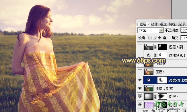 10、创建亮度/对比度调整图层,参数设置如图17,确定后用黑色画笔把人物脸部及肤色部分擦出来,效果如图18。