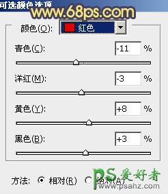 12、创建可选颜色调整图层,对红,黄,白进行调整,参数设置如图21 - 23,确定后用黑色画笔把人物脸部及肤色部分擦出来,效果如图24。