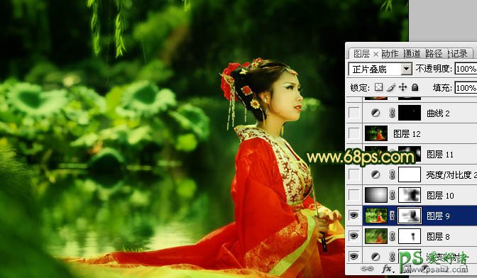 12、新建一个图层,盖印图层。图层混合模式改为“正片叠底”,加上图层蒙版,用黑色画笔把人物部分擦出来,效果如下图。