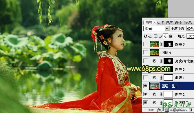 4、把背景图层复制一层,按Ctrl + Shift + ] 置顶,图层混合模式改为“柔光”,不透明度改为:60%,效果如下图。