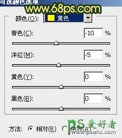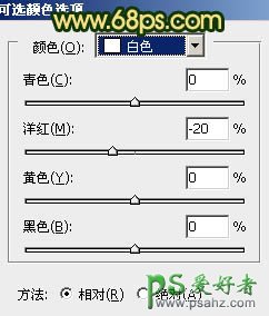 9、创建可选颜色调整图层,对黄,绿,白进行调整,参数设置如图18 - 20,效果如图21。