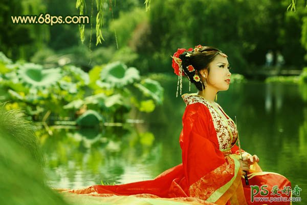 今天我们来学习一篇PS古装美女图片调色教程,PS调色教程:给古装美女图片调出个性暗绿色,本教程介绍暗调外景人物图片调色方法。大致过程:先把图片整体色调压暗,背景部分可以适当模糊处理,再适当用调色工具调出主色。然后把人物部分调亮即可。 最终效