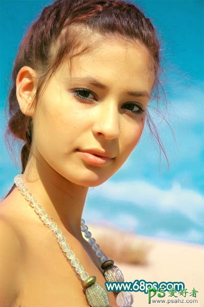 PS美女照片后期调色教程,photoshop调出暖黄色美女人体艺术照,本教程介绍色调较为明亮的橙红的人物图片调色方法,由于原图素材本身色调以暖色为主,调色的时候只需要把肤色部分稍微调亮一点,对比度加大一点即可。 最终效果 原图 1、打开原