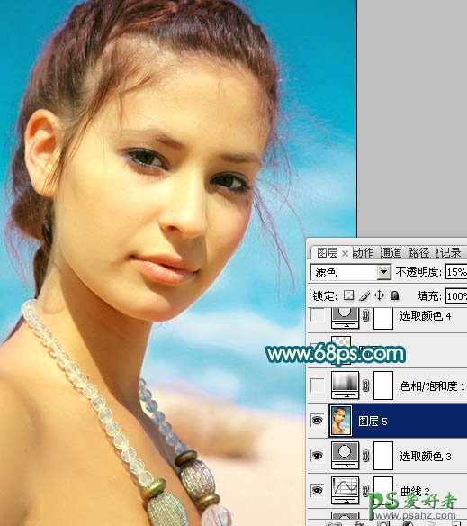 10、新建一个图层,按Ctrl + Alt + Shift + E 盖印图层,图层混合模式改为“滤色”,不透明度改为:15%,效果如下图。