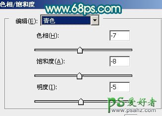 11、创建色相/饱和度调整图层,对青色进行调整,参数设置如图26,效果如图27。