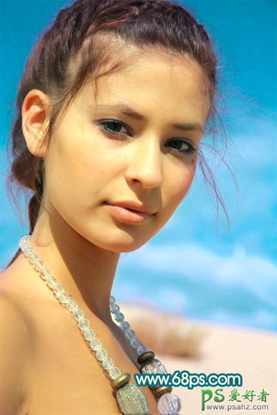 PS美女照片后期调色教程,photoshop调出暖黄色美女人体艺术照,本教程介绍色调较为明亮的橙红的人物图片调色方法,由于原图素材本身色调以暖色为主,调色的时候只需要把肤色部分稍微调亮一点,对比度加大一点即可。 最终效果 原图 1、打开原