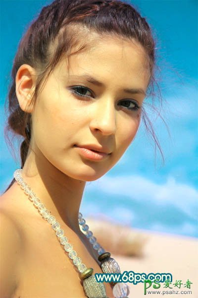 PS美女照片后期调色教程,photoshop调出暖黄色美女人体艺术照,本教程介绍色调较为明亮的橙红的人物图片调色方法,由于原图素材本身色调以暖色为主,调色的时候只需要把肤色部分稍微调亮一点,对比度加大一点即可。 最终效果 原图 1、打开原