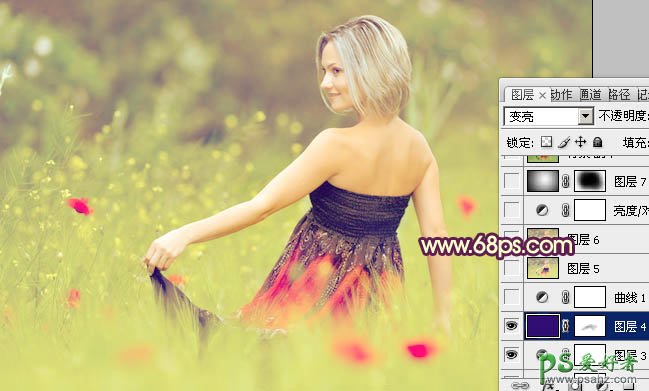 photoshop调出粉绿色清爽欧美少女艺术照