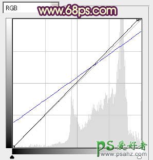 7、创建曲线调整图层,对RGB,蓝色进行调整,参数设置如图13,效果如图14。