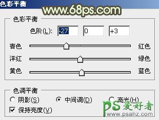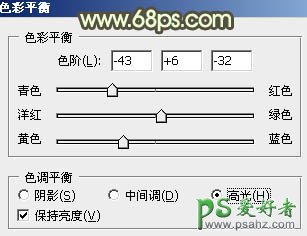 1、打开原图素材,创建色彩平衡调整图层,对阴影,中间调,高光进行调整,参数设置如图1 - 3,效果如图4。