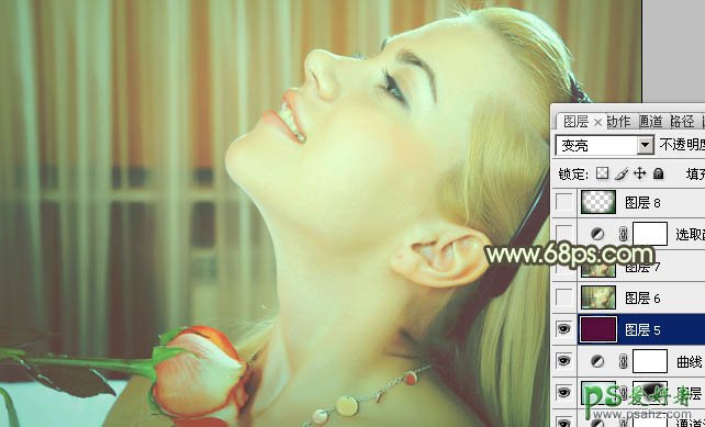 9、新建一个图层,填充颜色:#590F3C,图层混合模式改为“变亮”,效果如下图。