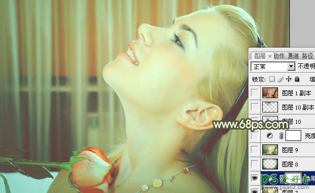 photoshop调出粉绿色清爽欧美少女艺术照