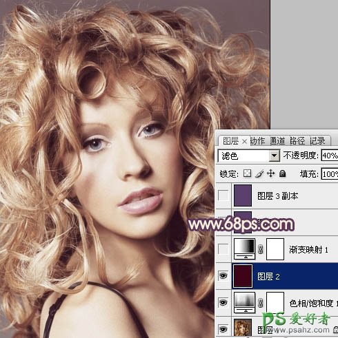 3、新建一个图层,填充颜色:#3D0316,图层混合模式改为“滤色”,不透明度改为:40%,效果如下图。