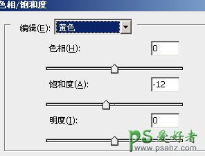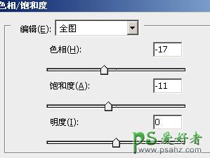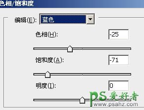 2、新建色相/饱和度调整图层,对全图,黄,蓝进行调整,参数及效果如下图。
