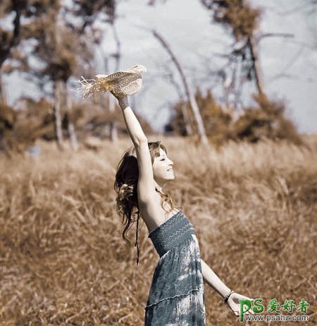 PS调色教程:给田野中的欧美少女写真照调出怀旧效果