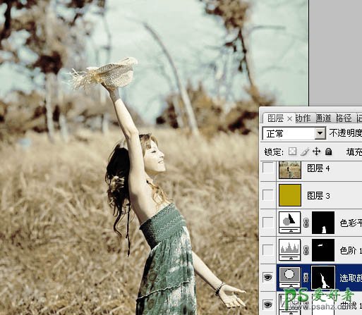 PS调色教程:给田野中的欧美少女写真照调出怀旧效果