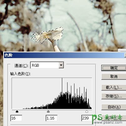 7、用套索工具勾出帽子部分,创建色阶调整图层,参数设置如下图。