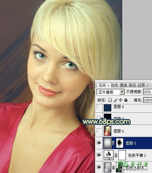 11、新建一个图层,按Ctrl + Alt + Shift + E 盖印图层。执行:滤镜 > 模糊 > 高斯模糊,数值为5,确定后把图层混合模式改为“柔光”,不透明度改为:30%,效果如下图。>