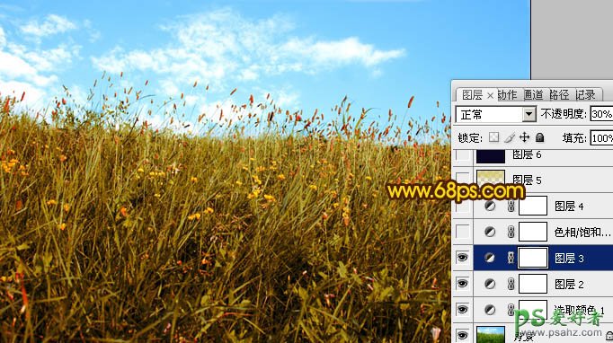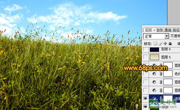 PS调色教程:给草地风景照调出淡雅的金黄色
